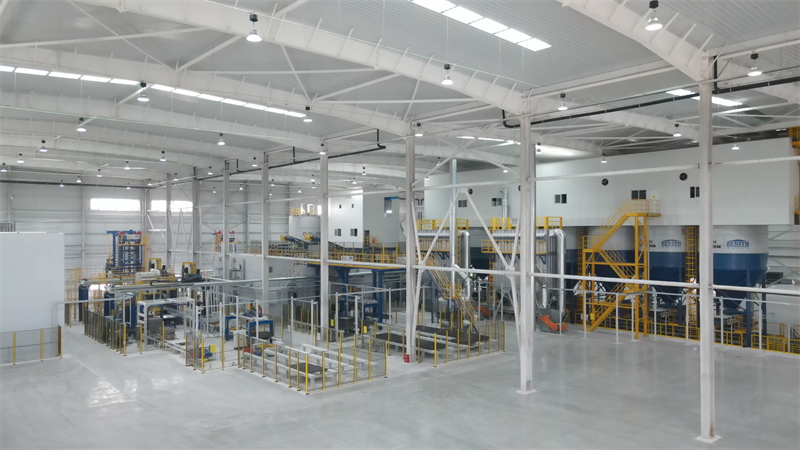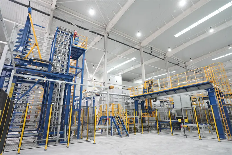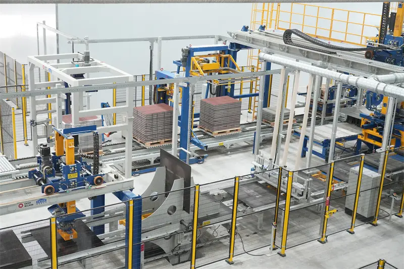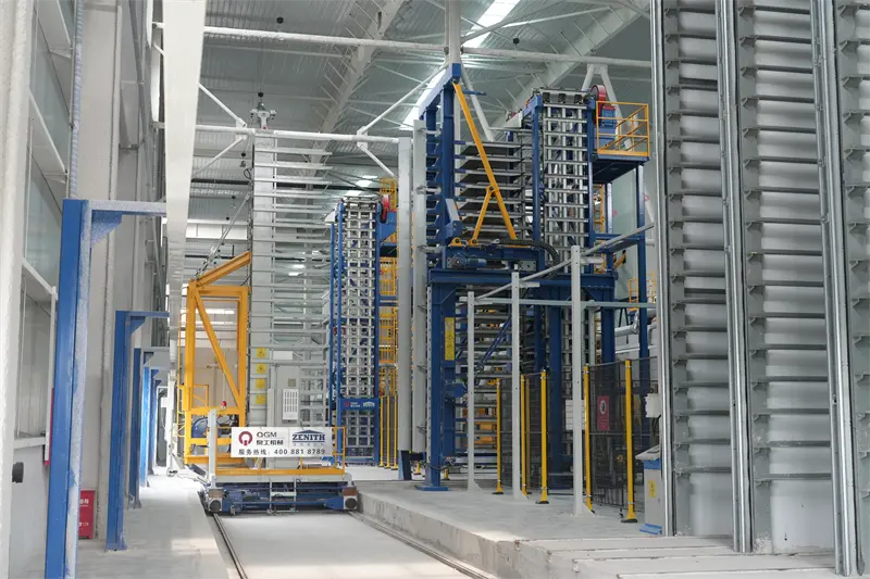 Barisan pengeluaran jentera QGM mengamalkan reka bentuk automatik sepenuhnya dan dilengkapi dengan peralatan canggih seperti sistem palletizing servo dan sistem kereta ibu dan anak automatik sepenuhnya dibangunkan oleh QGM, menyedari automasi proses penuh dari pemprosesan bahan mentah ke penumpukan produk siap. Antaranya, sistem kedudukan ketepatan tinggi dan robot palletizing pintar memastikan pengeluaran yang stabil dan cekap, mengurangkan penggunaan tenaga keseluruhan sebanyak 25% dan kos buruh sebanyak 40%.