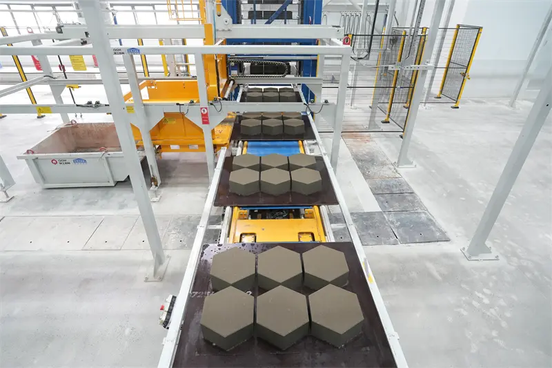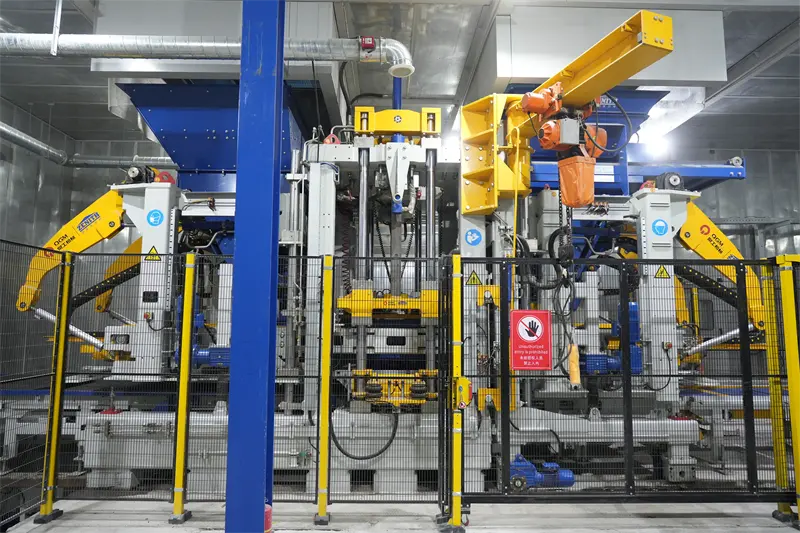 Peralatan teras barisan pengeluaran menggunakan mesin pembentukan blok ZN1500-2C yang baru dibangunkan oleh QGM, yang mengintegrasikan beberapa teknologi yang dipatenkan. Peralatan ini dilengkapi dengan sistem perubahan acuan cepat pintar, yang dapat dengan cepat beralih untuk menghasilkan produk yang pelbagai seperti batu bata turapan dan batu bata yang telap; Berdasarkan platform internet industri, ia menyedari pemantauan masa nyata dan analisis pintar data pengeluaran, memendekkan masa tindak balas amaran kegagalan peralatan sebanyak 60%, dan meningkatkan kecekapan operasi dan penyelenggaraan dengan ketara.