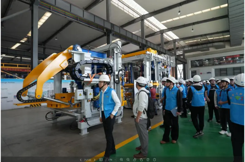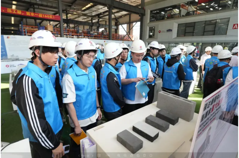 Di Bengkel Pembuatan Peralatan, pelawat melawat makmal, bengkel pemasangan, dan bengkel debugging, mempelajari keseluruhan proses dari analisis bahan mentah untuk menyelesaikan set peralatan pembuatan blok automatik. Di kawasan sampel, pelbagai spesifikasi dan aplikasi produk yang dihasilkan menggunakan jentera pembuatan batu bata syarikat dipaparkan, termasuk batu bata dinding dalaman dan luaran, batu bata luaran dan batu benteng, pemeliharaan air dan bahan kawalan banjir, perlindungan cerun ekologi, dan dinding penahan graviti. Di bilik persidangan, video promosi syarikat telah ditunjukkan.